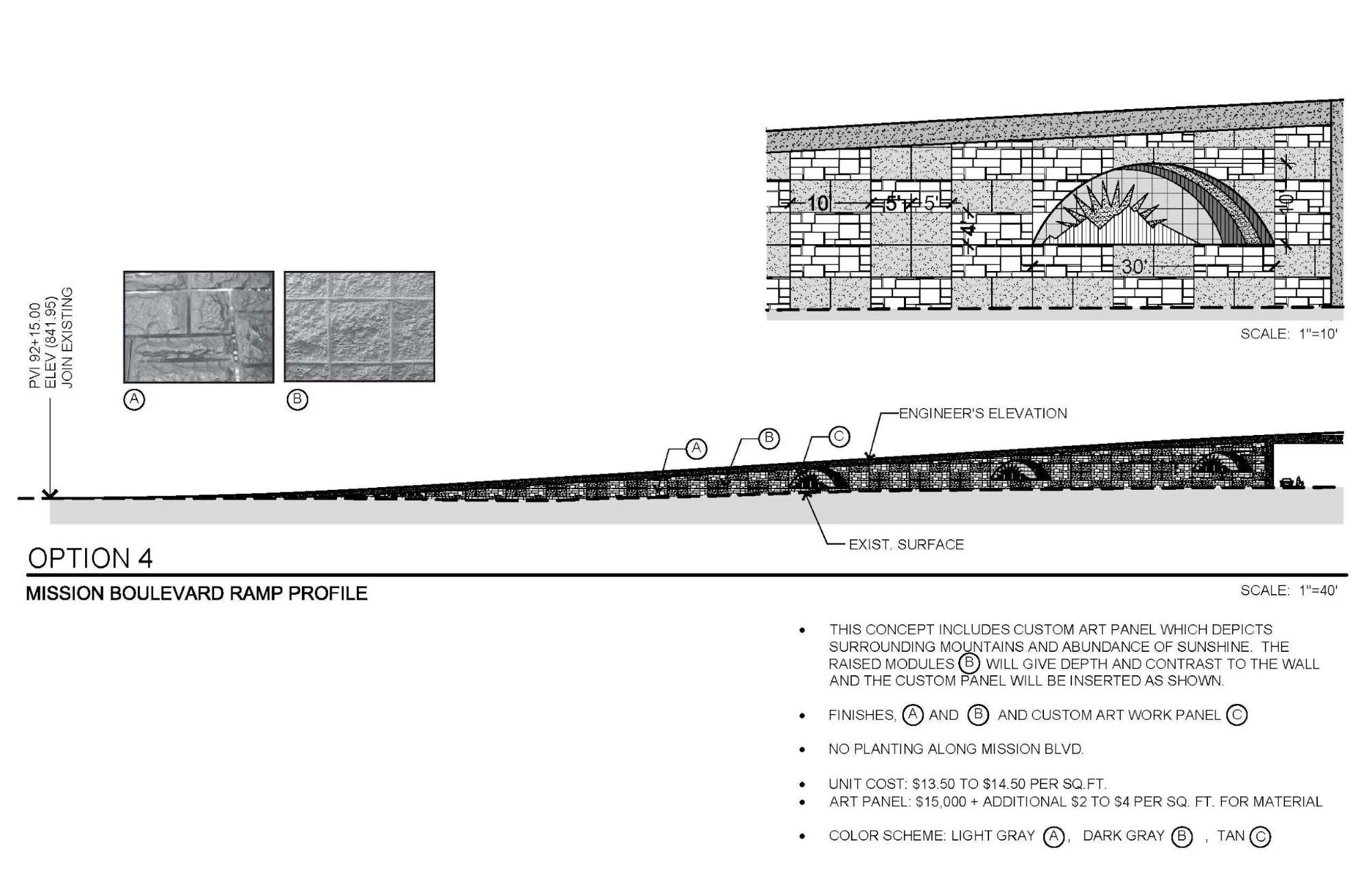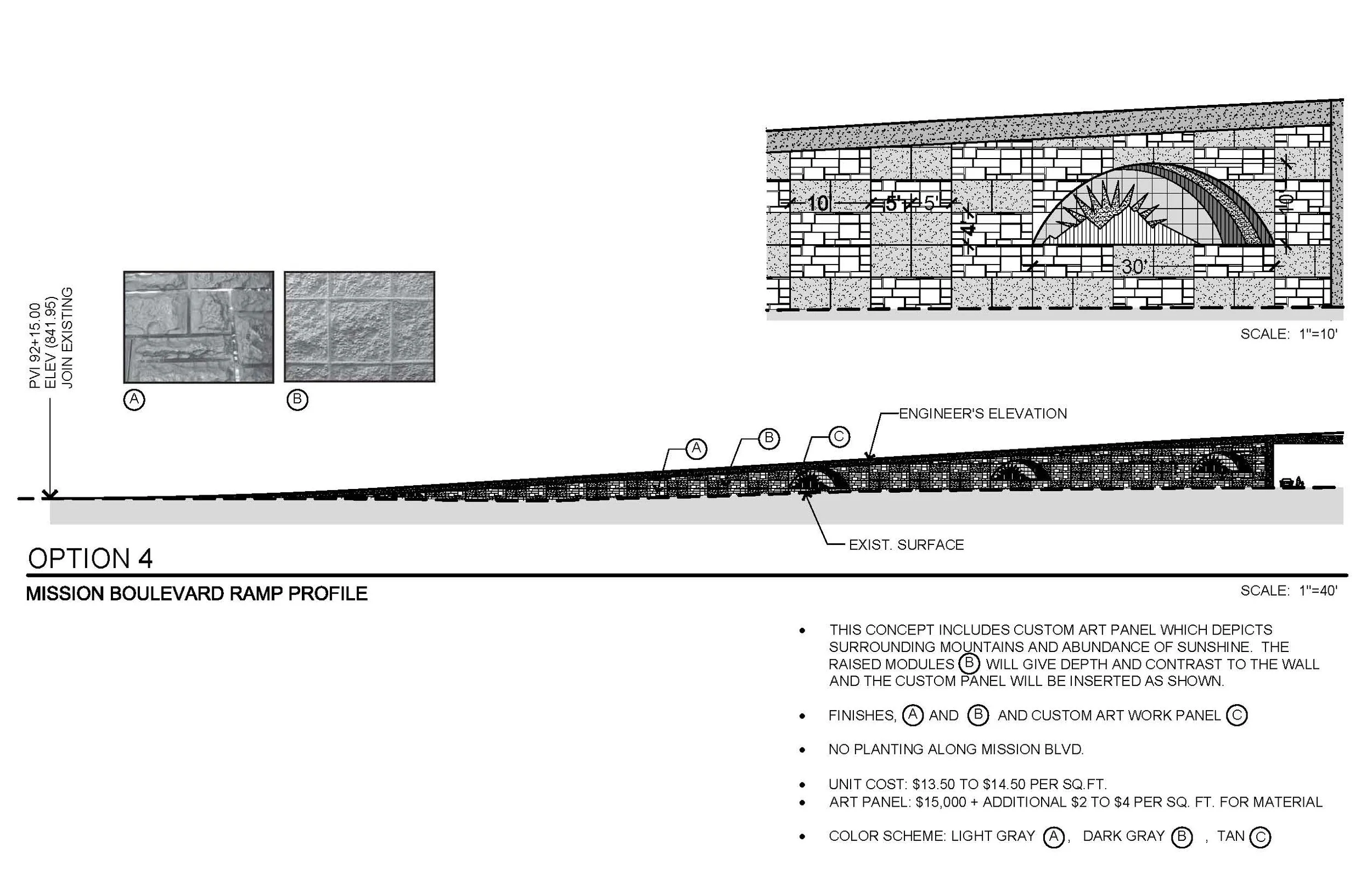 This is an on-going project in the City of Ontario. Milliken Avenue will be an elevated structure over the Union Pacific Rail Road and Mission Boulevard. There will be aesthetic treatment for the retaining walls and landscape treatment along the street parkways and medians. A small amount of encroachment into adjacent private properties along Milliken and Mission will need to be addressed during the course of designing the project.